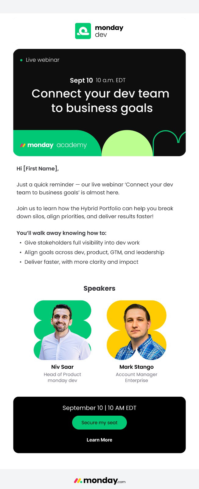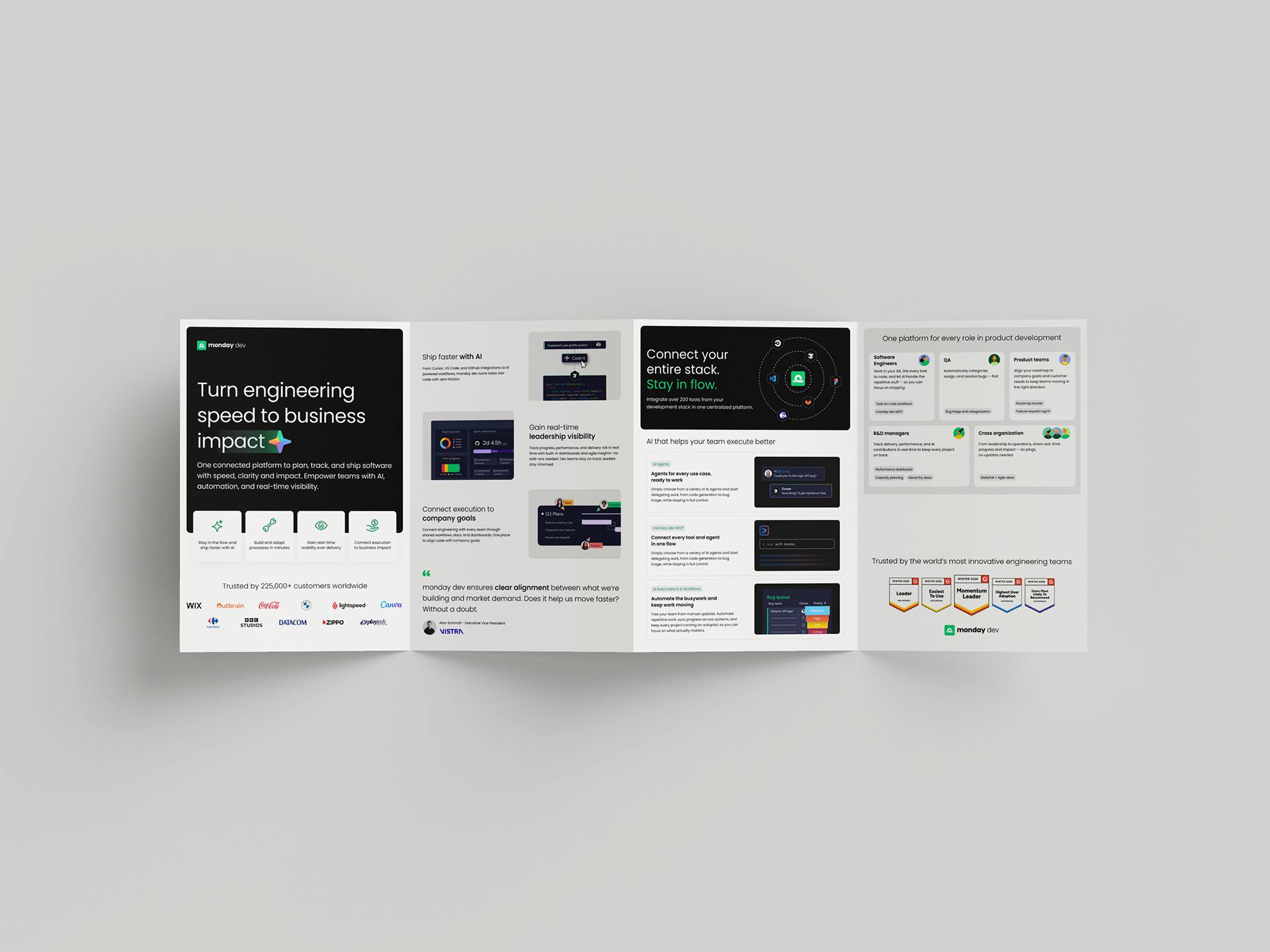 I designed visual assets and motion graphics for Monday Dev, including social media ads, banners, email campaigns, webinar and event materials, brochures, and minisite content. All projects were created to engage audiences and maintain a consistent, dynamic brand presence.